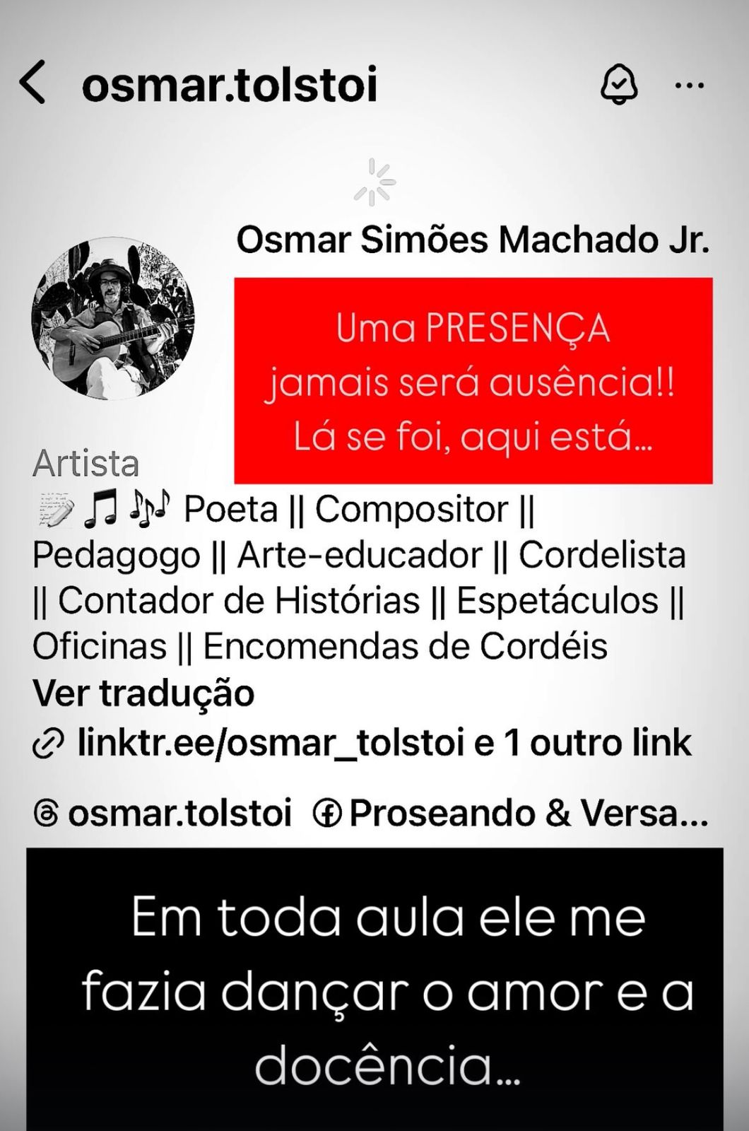 Comunicamos com profundo pesar, o falecimento do pedagogo, poeta, cordelista, arte-educador, Osmar Simões Machado Jr., egresso da Faculdade de Educação (FACED/UFBA). Toda a nossa solidariedade aos seus familiares e amigos neste momento de tristeza.